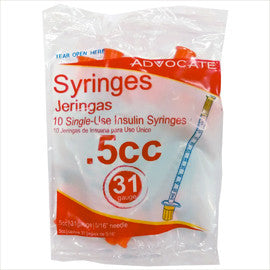 Advocate Insulin Syringes 31G - 1/2cc Syringes (5/16") -Polybag of 10 Ct