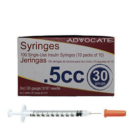 Advocate Insulin Syringes - 30G 1/2cc 5/16"- BX 100