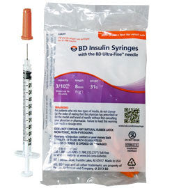 - Polybag of 10 syringes- BD Ultra-Fine II Short Needle Insulin Syringe 3/10 cc 31 G x 8 mm (5/16 in)