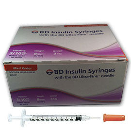 BD Ultra-Fine II Short Needle Insulin Syringe - 3/10cc 31G 5/16" - BX 90