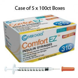 - Case of 5 Clever Choice Comfort EZ Insulin Syringes - 31G U-100 1 cc 5/16" - BX 100