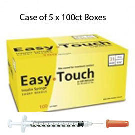 • 100 EasyTouch Insulin Syringes - Case of 5 (500 total)
