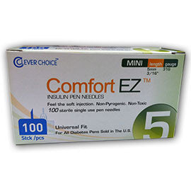 The Clever Choice Comfort EZ Pen Needle is designed for maximum comfort and lines up precisely for accurate readings. Multi-facet needle bevel with lubricant coating allows for a more smooth and comfortable injection.