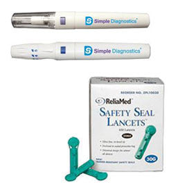 Simple Diagnostics Adjustable Lancing Device w/ Reliamed Safety Seal Lancets - 100ct
