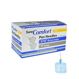 - Box of 100 SureComfort Mini Pen Needles 5/16" 31g