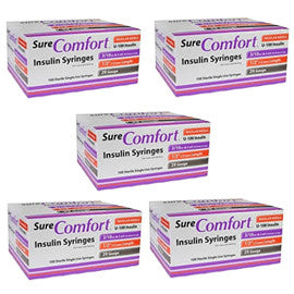 - 5 cases of SureComfort U-100 Insulin Syringes 29g 3/10cc 1/2in 100/bx