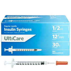 • 100 Single use UltiCare Insulin Syringe - 1/2cc, 30g x 1/2" (10 packs of 10)