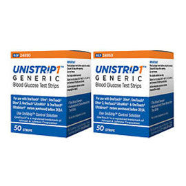 The UniStrip Glucose Test Strips work with the OneTouch Ultra, OneTouch Ultra2, OneTouch UltraSmart, and OneTouch UltraMini meters (purchased before April 2016) saving the user test strips and money. The capillary action automatically draws the blood sample into the test strip. Unistrip Test Strips are approved for alternate site testing. Our glucose oxidase technology allow for safer and more accurate results.