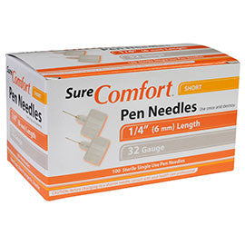 - Box of 100 SureComfort Mini Pen Needles 32G 1/4"